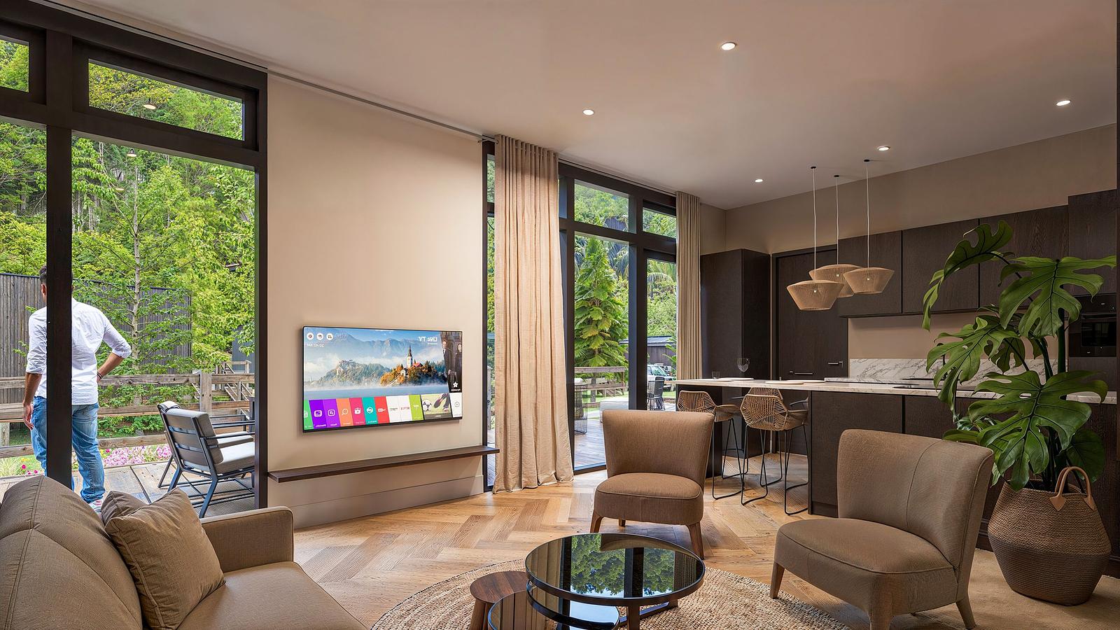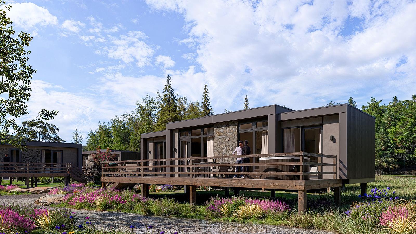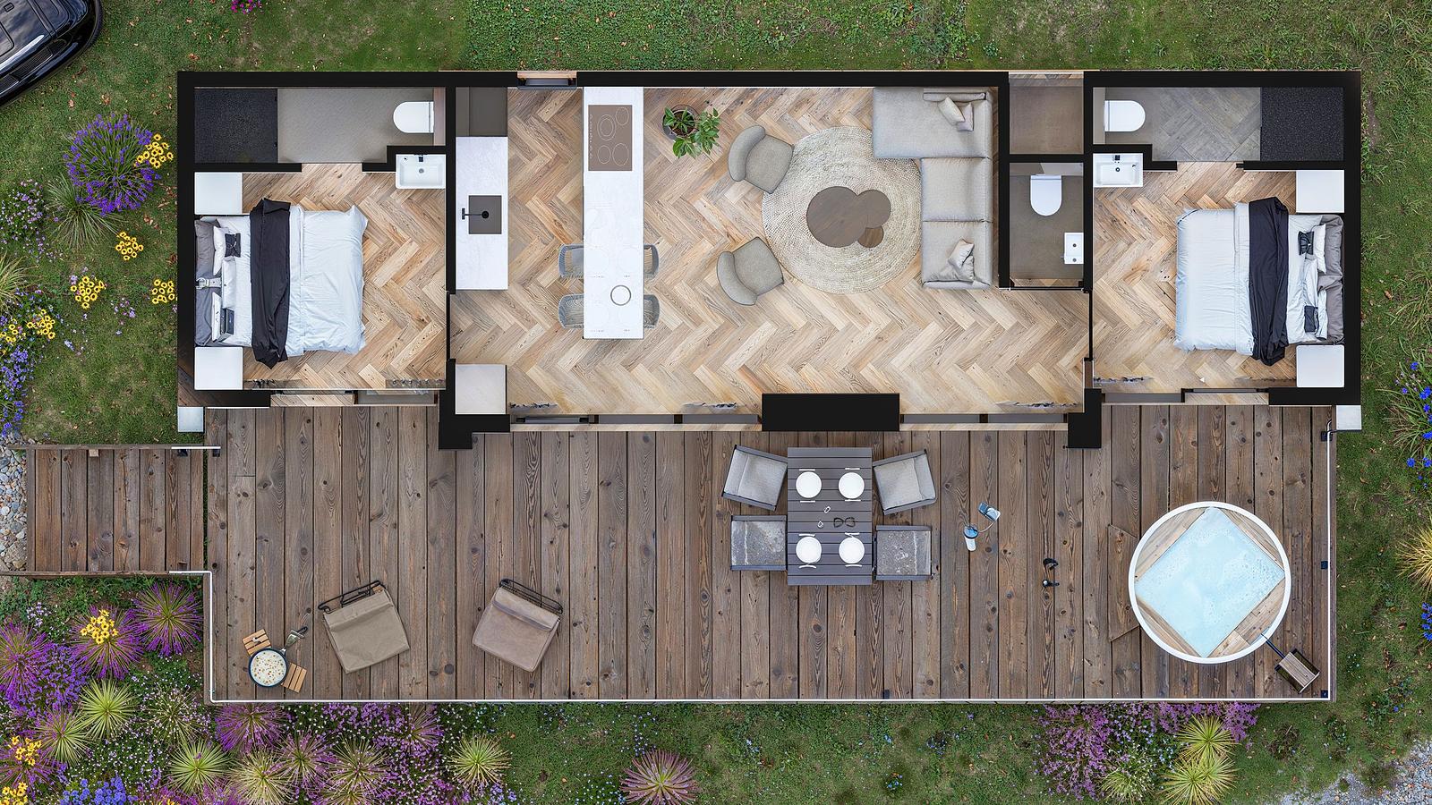 Dieses großzügige 60m² große Ferienhaus zeichnet sich durch eine einzigartige Mittelraumaufteilung aus, die für ein spielerisches und äußerst stimmungsvolles Wohnerlebnis sorgt. Das Haus ist für 4 Personen ausgelegt und bietet durch seine geschickte Aufteilung eine angenehme Balance zwischen gemeinsamer Gemütlichkeit und ausreichender Privatsphäre. Durch seine sorgfältige Lage genießen Sie eine ruhige Lage im Park mit freiem Blick auf die Umgebung.